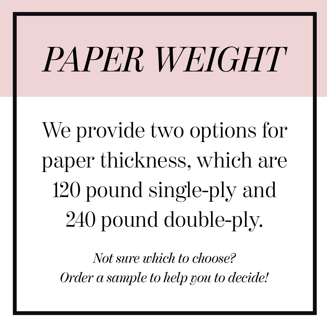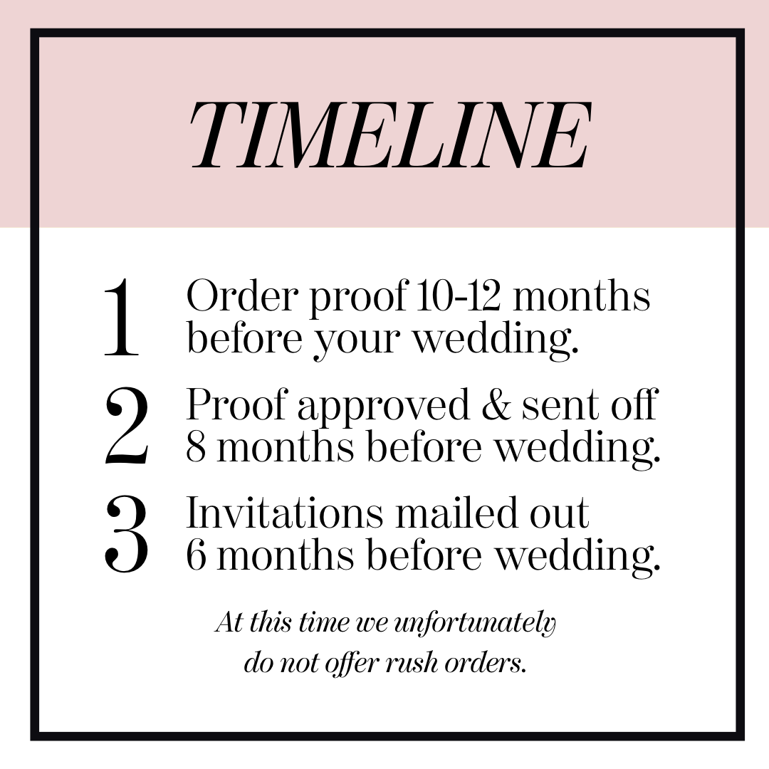 Our Mollie Paperie Original Suites are formatted in a way to make ordering simple, while leaving room for designing invitations that accurately represent what you are envisioning. However, further design changes or completely custom wedding paper are an option as well. We want to help make your big day as special as you do.
